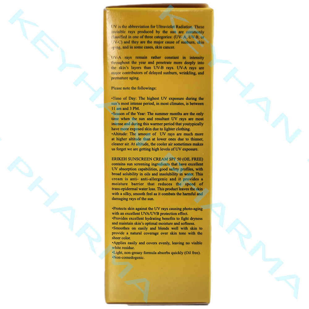 کرم ضد آفتاب فاقد چربی اریکه +SPF50 (رنگی)
